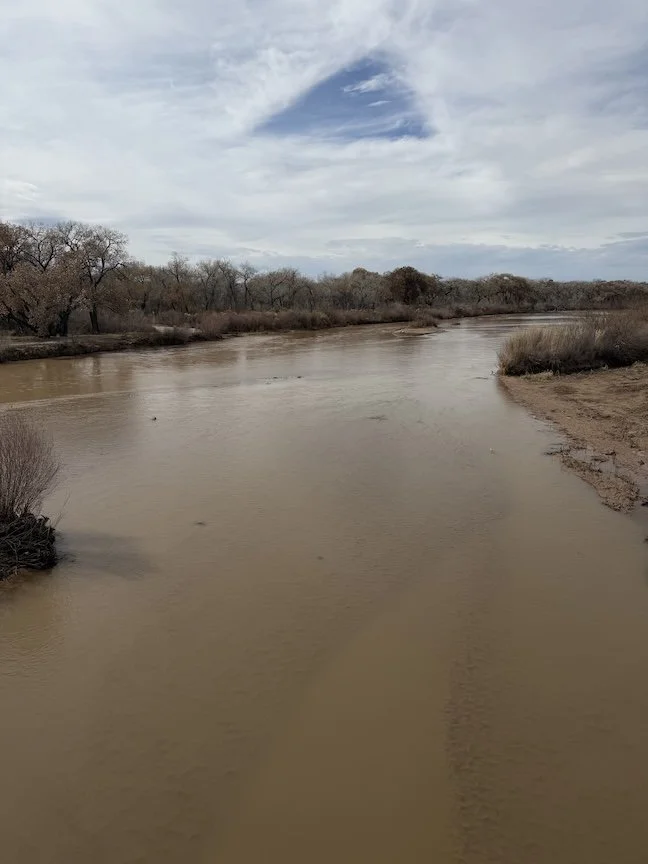 Somewhere downtown in Albuquerque New Mexico, you can take Route 66 and end up on a bridge that allows you to cross and take in the Rio Grande river. I wanted to check this out because I recall reading an article last year that the river had run completely dry over the Summer. When i got to the river banks, I saw flowing water but I also saw that it was suspiciously low. Going to assume the water flowing thru ABQ is from snow that has come down in Colorado. I admittedly don’t know much about where the Rio Grande starts, I’m a lot more familiar with where it ends in the Rio Grand Valley.
